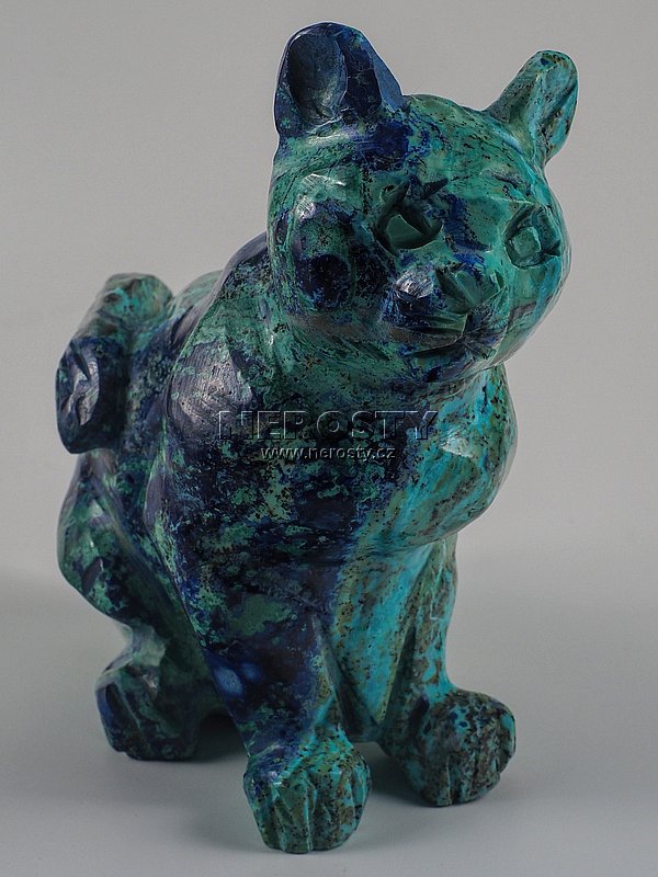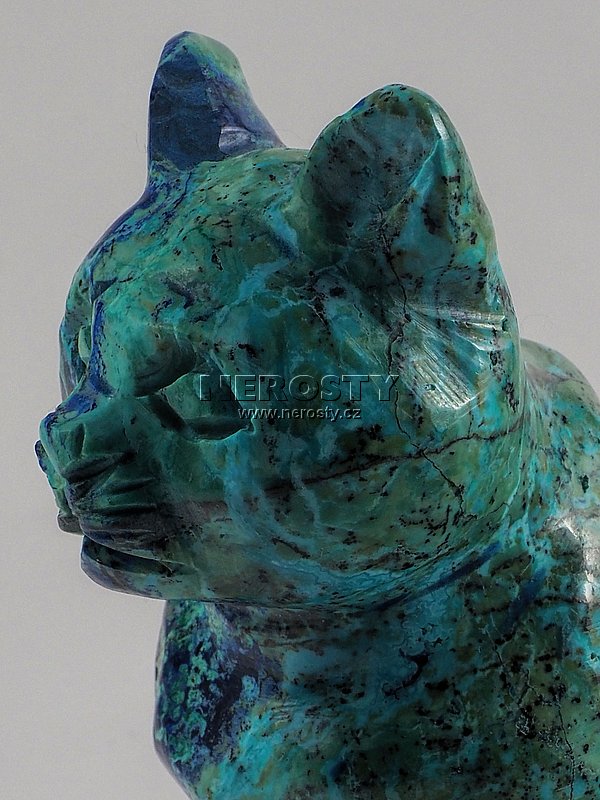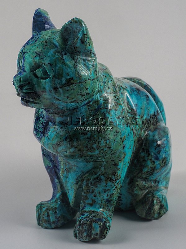 Originální ruční práce. I když se jedná o velmi pečlivě vybraný kus mohou na něm být patrné drobné nerovnosti, prasklinky a další znaky, typické pro daný materiál a způsob zpracování. azurit, chryzokol, kočka, #15194:18200 Objednáváte konkrétní vyfotografovaný kus. Při objednání obdržíte přesně to, co vidíte na obrázku. Vzorek si můžete osobně prohlédnout v naší prodejní galerii. | |