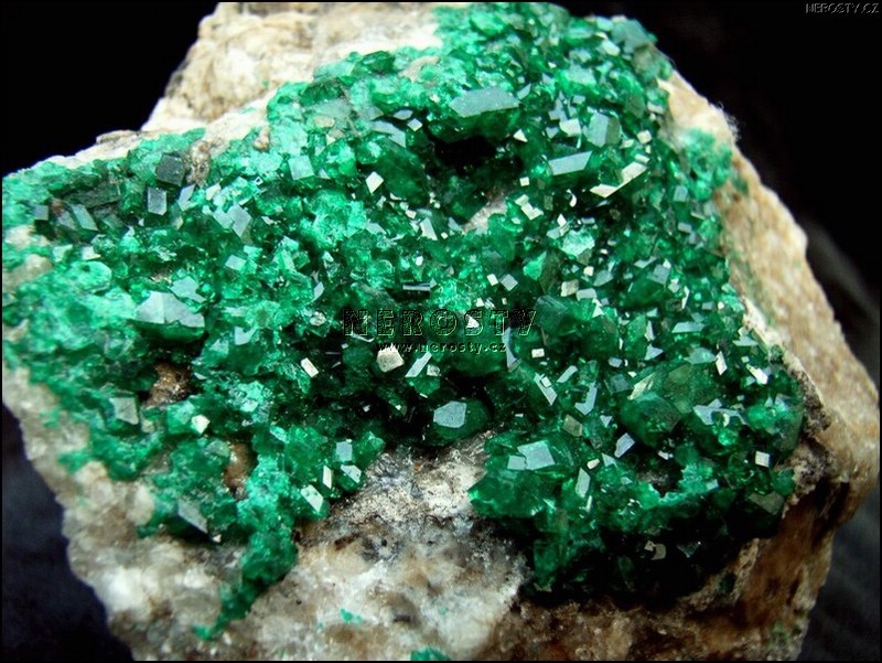 dioptas # 3 z lokality Altyn-Tyube, oblast Karganda, Kazachstán