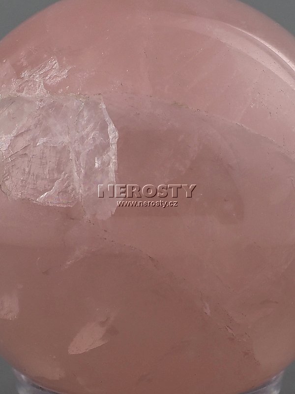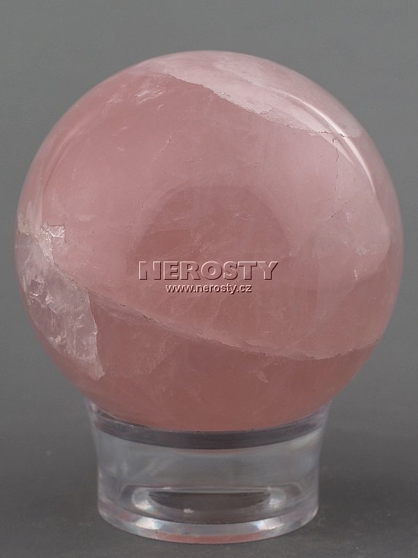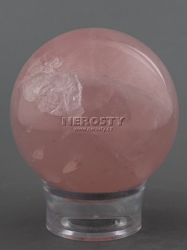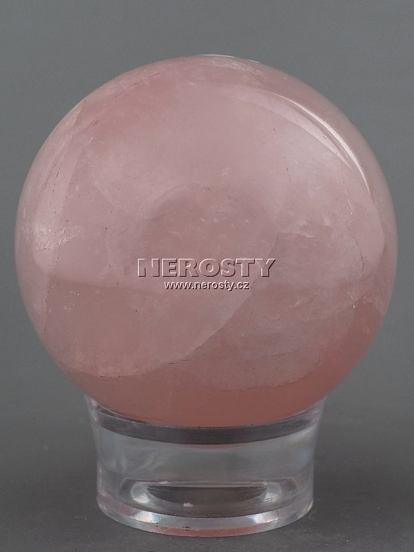Sytě růžová, nestejnoměrně probarvená růženínová koule.