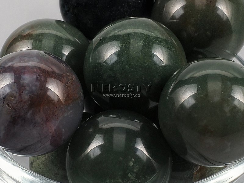 Originální ruční práce. I když se jedná o velmi pečlivě vybraný kus mohou na něm být patrné drobné nerovnosti, prasklinky a další znaky, typické pro daný materiál a způsob zpracování. mechový achát, koule, #759:190