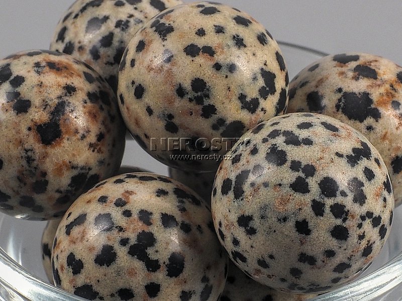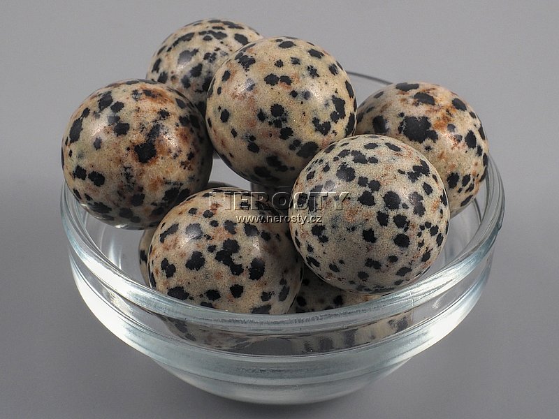 Originální ruční práce. I když se jedná o velmi pečlivě vybraný kus mohou na něm být patrné drobné nerovnosti, prasklinky a další znaky, typické pro daný materiál a způsob zpracování. dalmatinit, jaspis, koule, #773:190