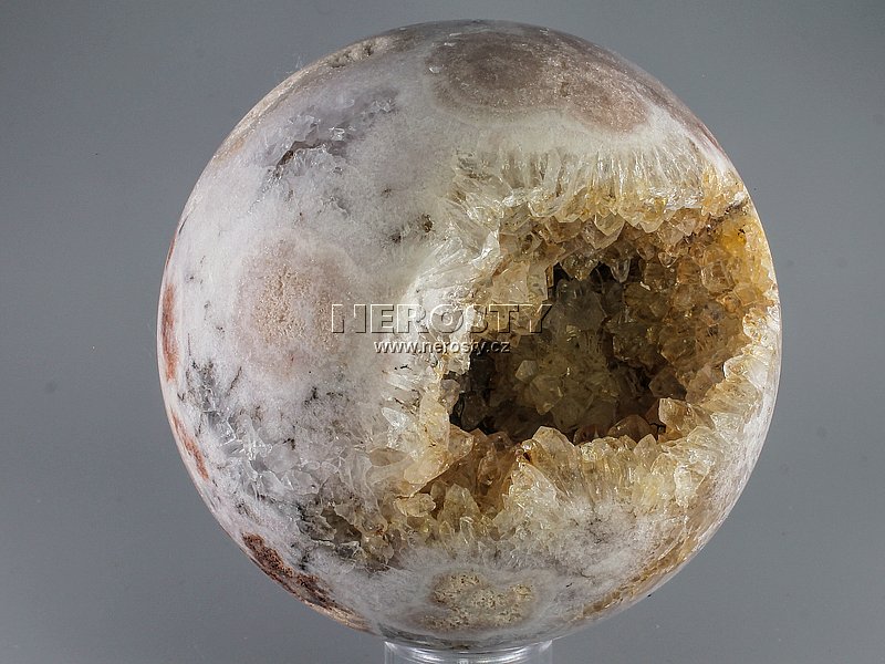Originální ruční práce. I když se jedná o velmi pečlivě vybraný kus mohou na něm být patrné drobné nerovnosti, prasklinky a další znaky, typické pro daný materiál a způsob zpracování. citrín, chalcedon, koule s krystaly, #16136:10960 Objednáváte konkrétní vyfotografovaný kus. Při objednání obdržíte přesně to, co vidíte na obrázku. Vzorek si můžete osobně prohlédnout v naší prodejní galerii. | |